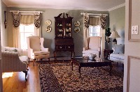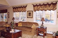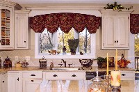- Custom poles for silk and bullion-trimmed balloon valances